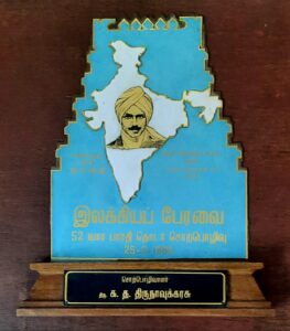 18.08.1954 அன்று, சென்னைப் பல்கலைக்கழகத்தின் பட்டமளிப்பு விழாவில், TK FRANKLIN GELL MEDAL பி.ஏ. ஹானர்ஸ் (எம்.ஏ) படிப்பில் முதல் வகுப்பு – முதல்நிலை பெற்றமைக்காக வழங்கப்பட்டது.